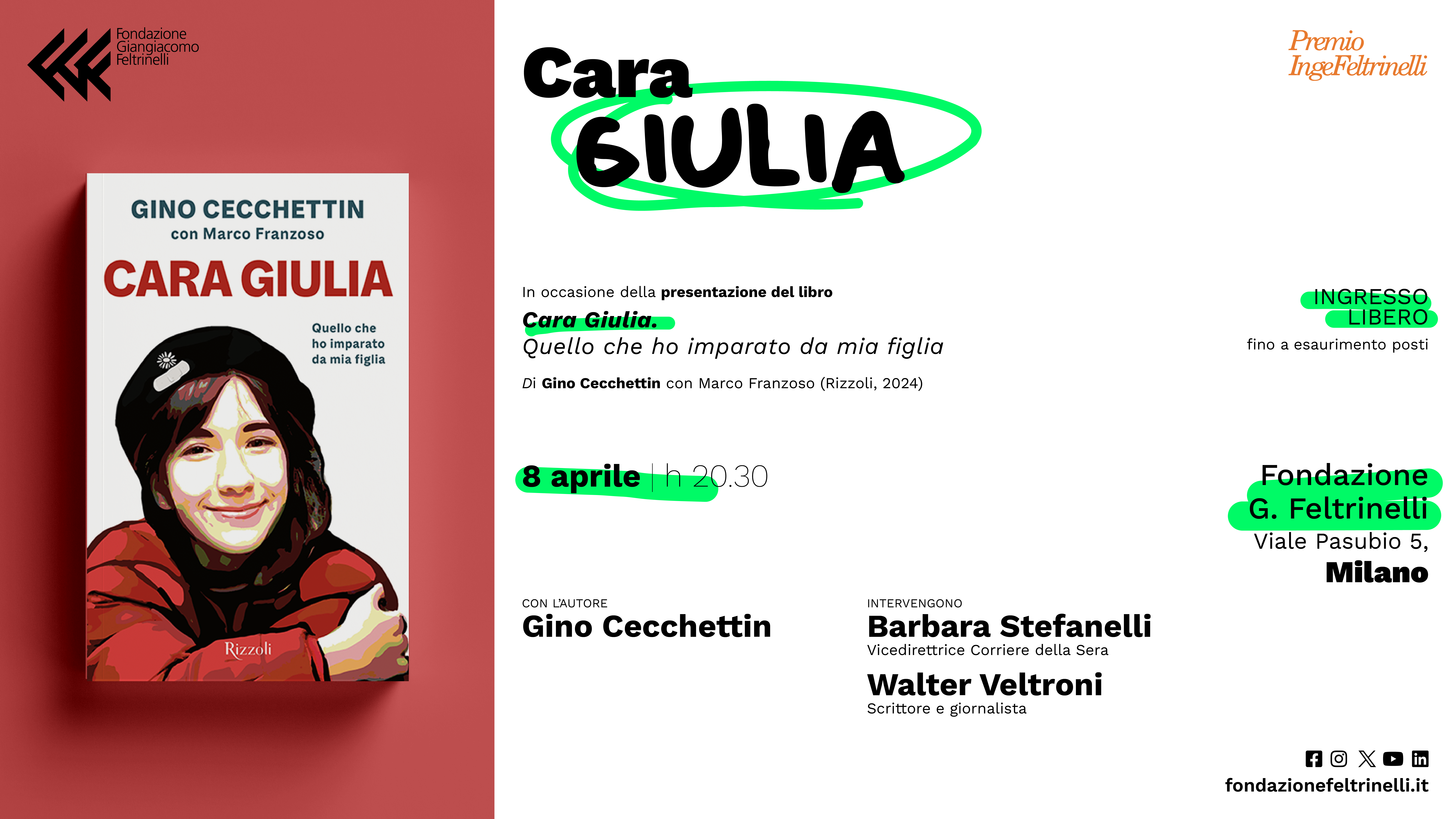 Un incontro pubblico in occasione della pubblicazione del libro “Cara Giulia. Quello che ho imparato da mia figlia” presso la Fondazione Giangiacomo Feltrinelli.